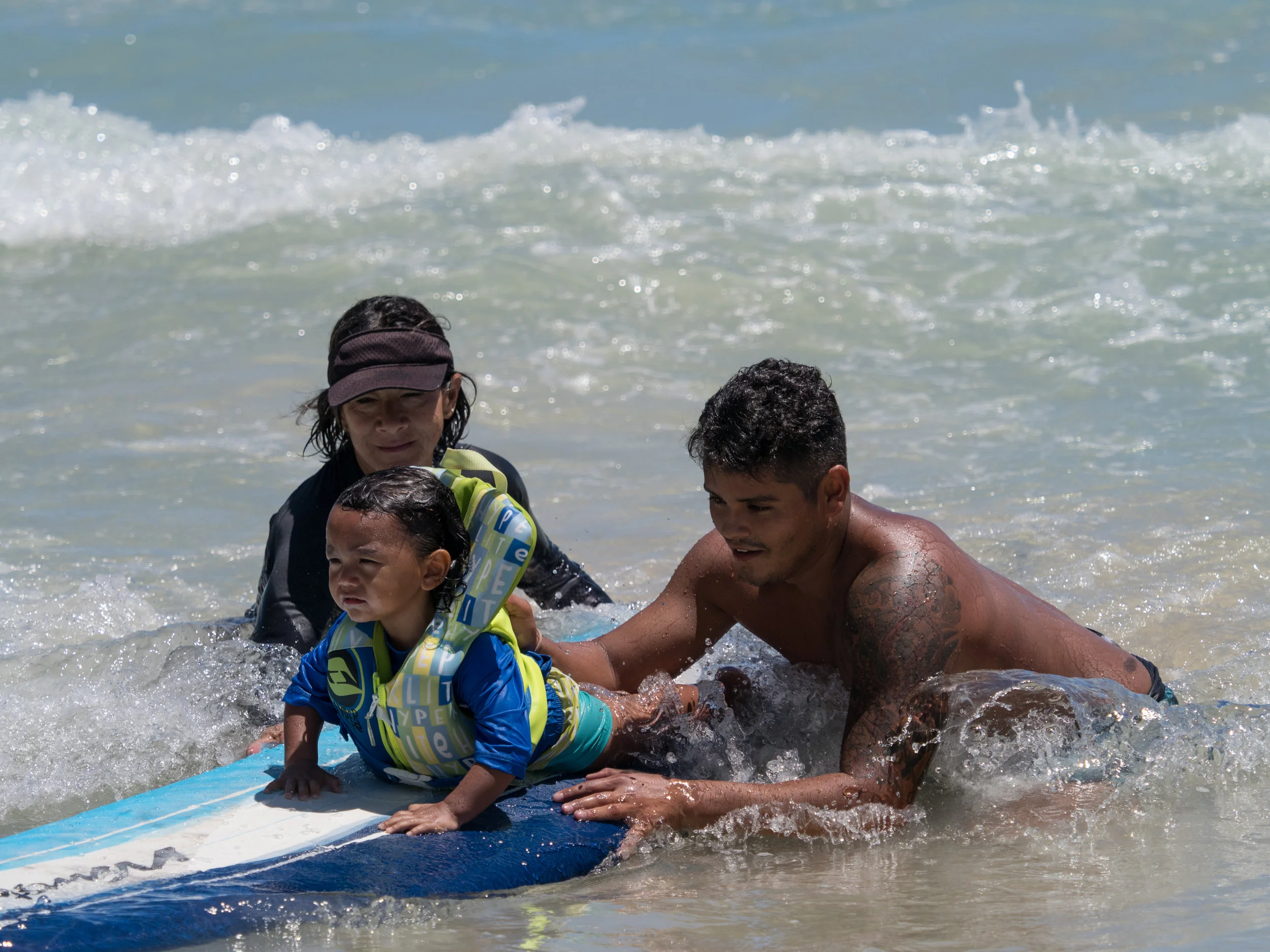Hawaiian culture prioritizes family, or ‘ohana. This term culturally extends beyond the traditional Western definition of the family nucleus to all members of a particular community group. With ‘ohana, everyone matters and has something unique and meaningful to contribute. This tenor of ‘ohana cultivates honor and respect for elders, protection and mentoring of the younger generations, and the inclusion of all community members. Surf culture, at its best, embraces this communal focus.