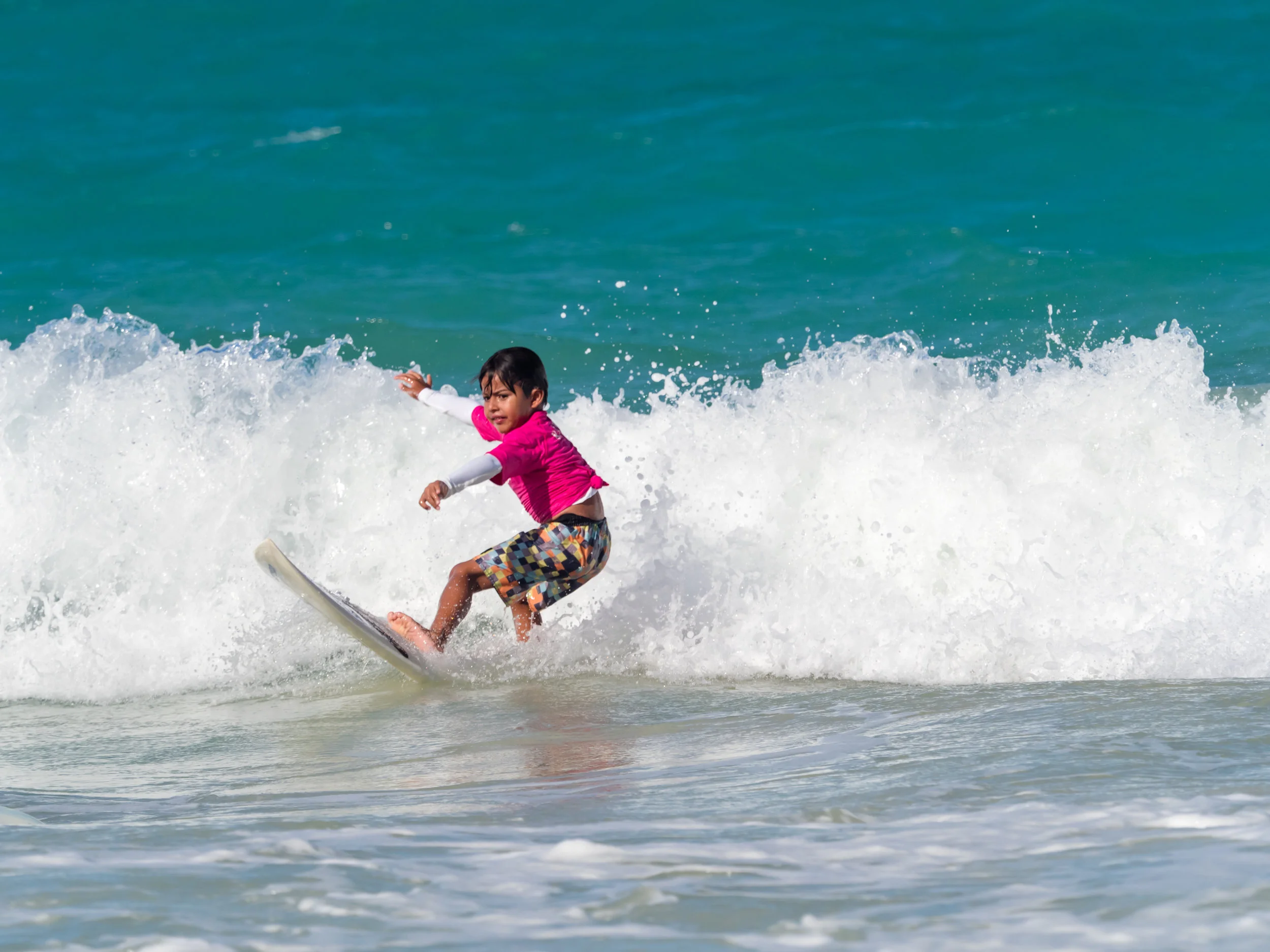 The annual event, hosted by Kalama Beach Club on the last weekend of August, has grown to become one of the largest amateur surf events in Hawaii. The contest is free for all contestants, a welcomed respite from high entry fees of other competitions. Money should not preclude keiki from competition. Experienced or beginner, tremendously skilled or not, all are welcome. Every child walks away a winner with a prize pack brimming with surf, skate and other items donated by local surf shops and restaurants. What’s not to like?