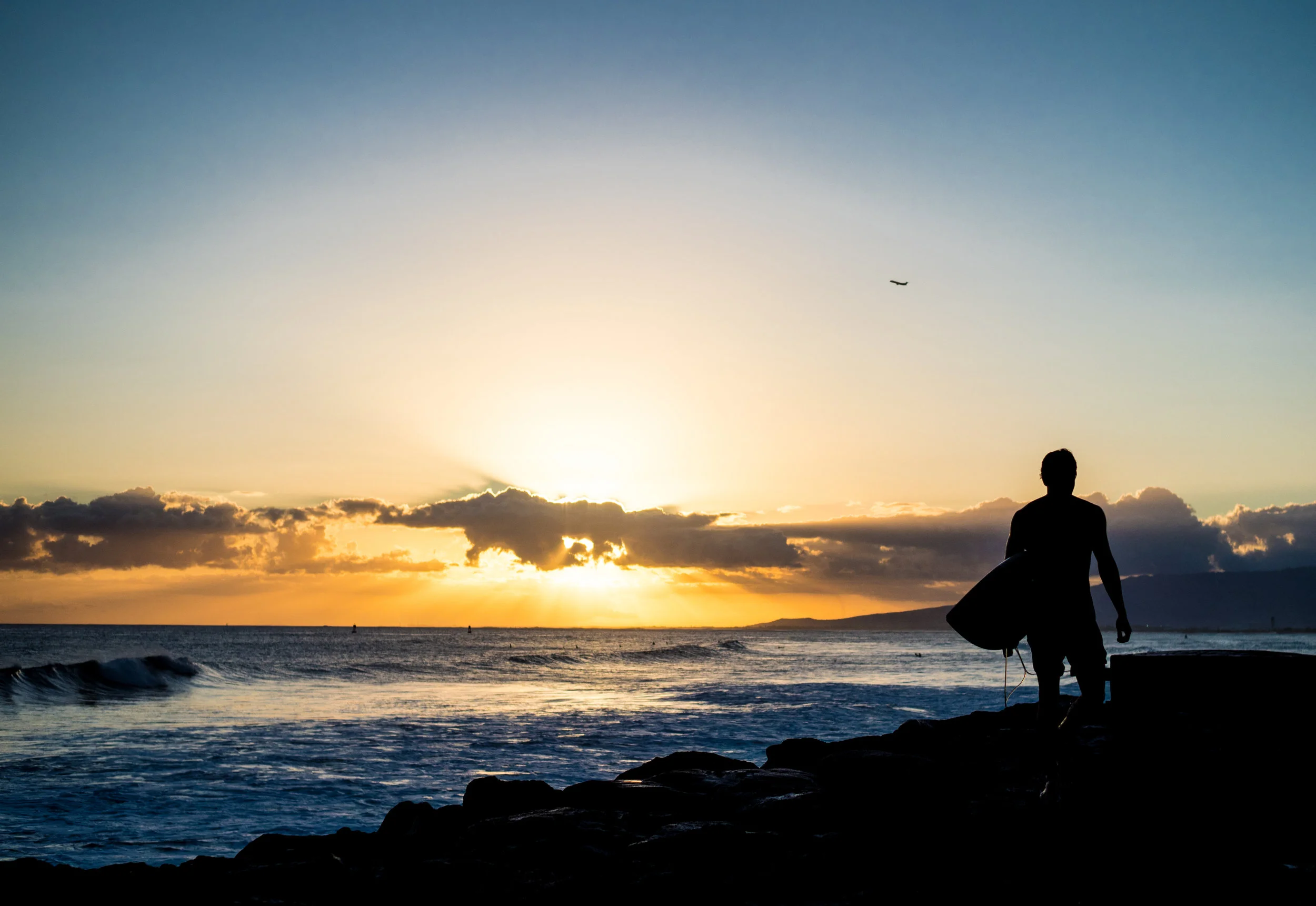 Ancient Hawaiian petroglyphs carved into the lava rock landscape document the Polynesian tradition of surfing. It traditioanlly fulfilled many purposes, such as fishing, strength conditioning for chiefs and warriors, dispute resolution and recreation. Hawaii’s early legal system illuminates surfing’s societal significance with intricate rules and prohibitions governing how, why, and with what materials surfboards were to be made. Folklore, chants and oral stories memorialized epic narratives of surfing feats. For centuries, surfing would be essentially isolated to this tiny Pacific island nation. During this time, Hawaiian societal norms and values became intrinsic in surf culture.